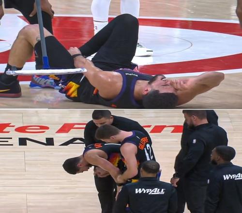 對比雄鹿隊,太陽隊今天更加慘烈,球隊兩大核心巨星布克和杰倫·格林在同場比賽中雙雙遭遇傷退。杰倫·格林僅僅出戰(zhàn)4分鐘就退場了,而布克狂砍31分后,第三節(jié)結(jié)束前5秒不慎踩到對手腳部,導致右腳踝90度嚴重扭傷,預計至少將缺席數(shù)周的時間,這對于狀態(tài)正佳的太陽來講,可謂是毀滅式的打擊。