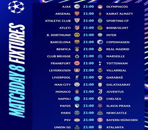 在第8輪的比賽中,只有阿森納主場對陣阿拉木圖凱拉特的比賽與出線席位之爭沒有關(guān)系,其余比賽都將決定著前8的產(chǎn)生。阿森納領(lǐng)先拜仁3分,比拜仁多5個凈勝球,基本鎖定榜首。拜仁將客戰(zhàn)埃因霍溫,只要取勝就將排名前2,從而在決賽前將避開阿森納。